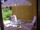 •Terraza/patio con mesa, sillas y quitasol