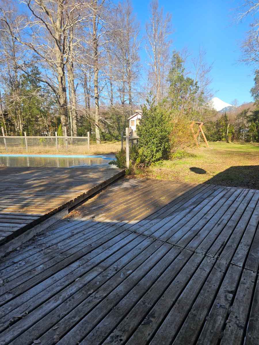 Arriendo Año Corrido Casa con quincho, piscina, agua de pozo y apr más bodega En parcela de 5.000 mt2. Sector Quetroleufu km.12,5. Ubicada a solo 15 km de Pucón y 10 km de Caburgua. Acogedora casa de 80 m² se en una tranquila parcela con camino interior ripiado