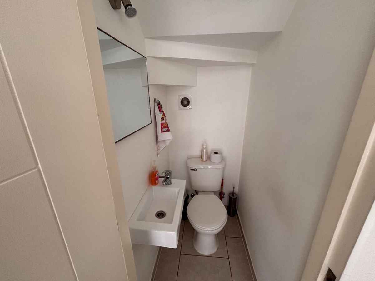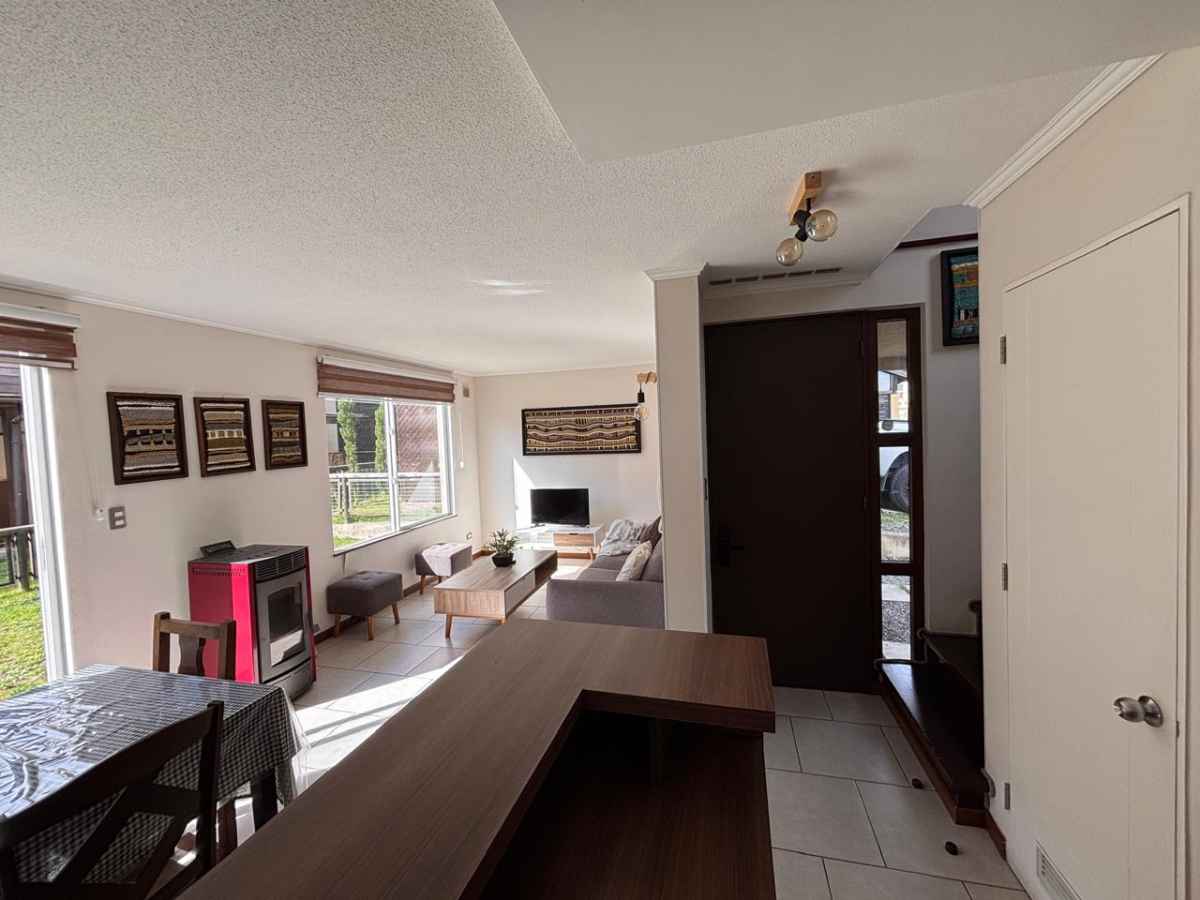 La casa cuenta con un acogedor living comedor equipado con un comedor para seis personas, un sillón y dos puff para relajarse. La cocina está equipada con microondas, cocina a gas, refrigerador, hervidor y tostador, ideal para preparar deliciosos platos.