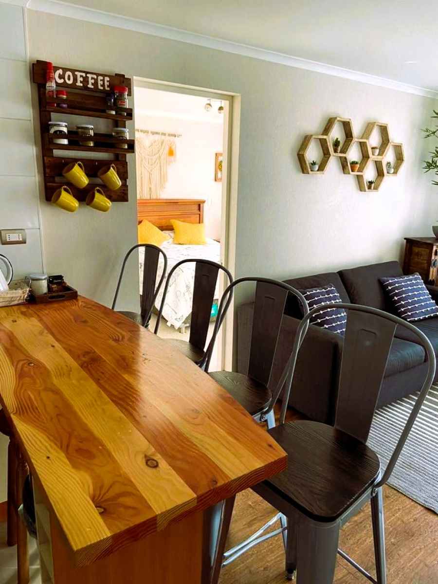 Arriendo de departamento estilo mariposa en el hermoso Condominio Parque del Volcán, ubicado en Camino Al Volcán N°930 en Pucón, a 2 kilómetros del centro. Está equipado para que habiten hasta 5 personas.