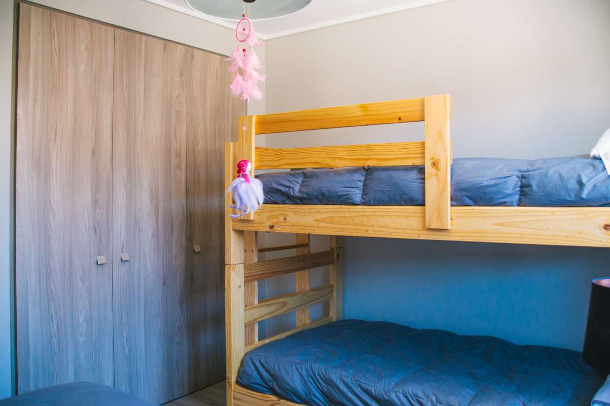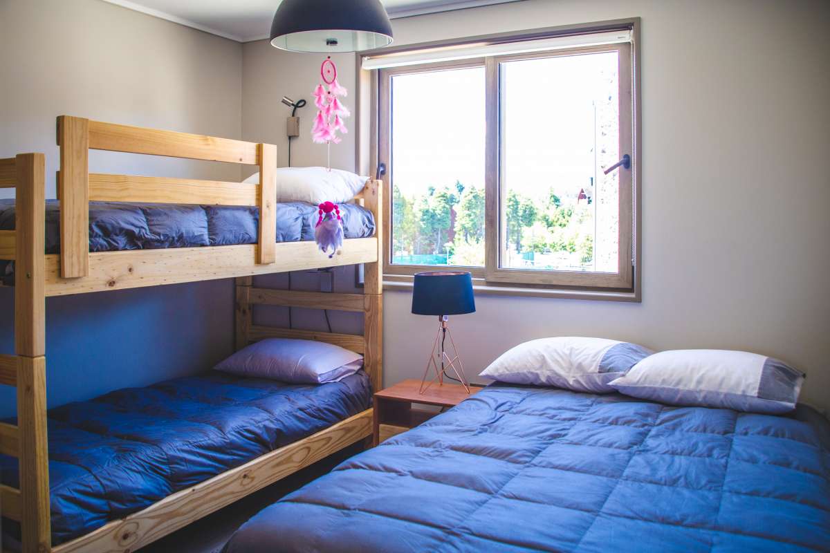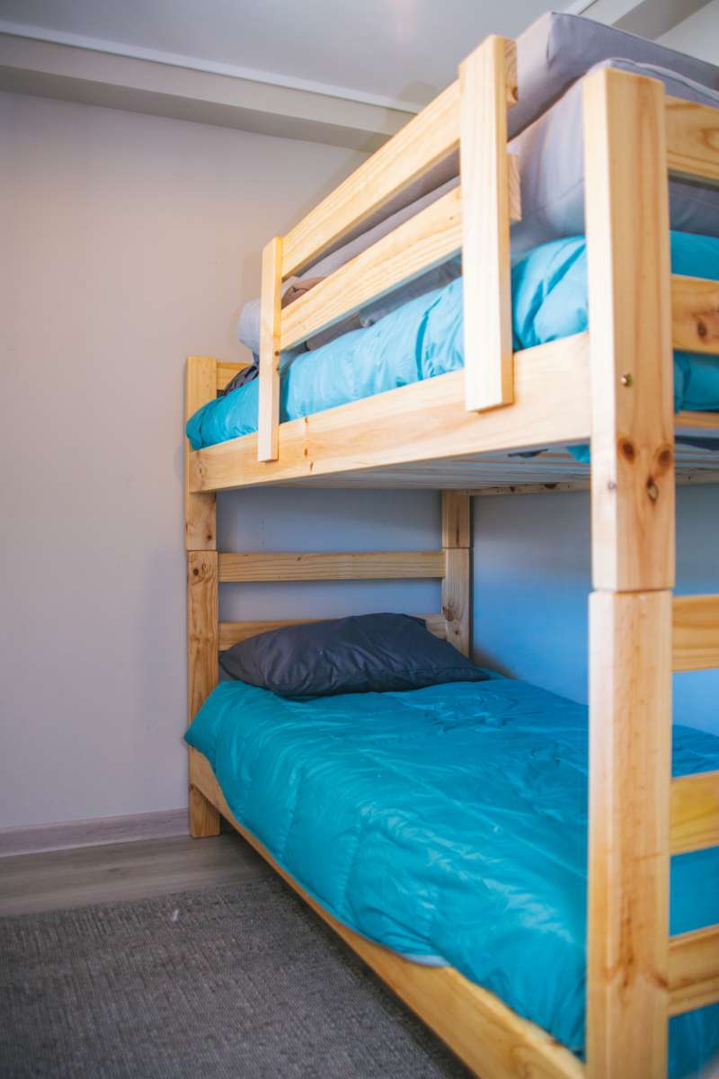 • Habitación 2: con un camarote (peso menor a 70 kg) y una cama, vista al volcán