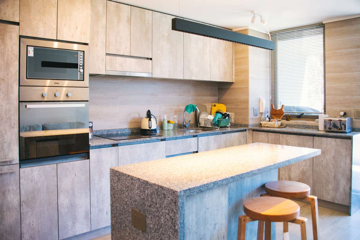 • Cocina americana equipada con horno eléctrico, microonda y refrigerador