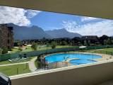 • Terraza con vista a la piscina, con sillas y mesa