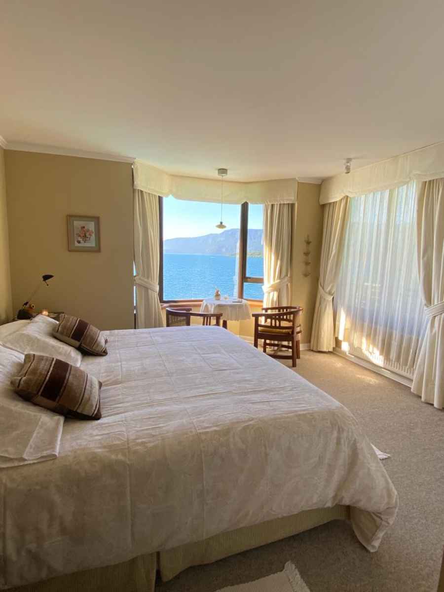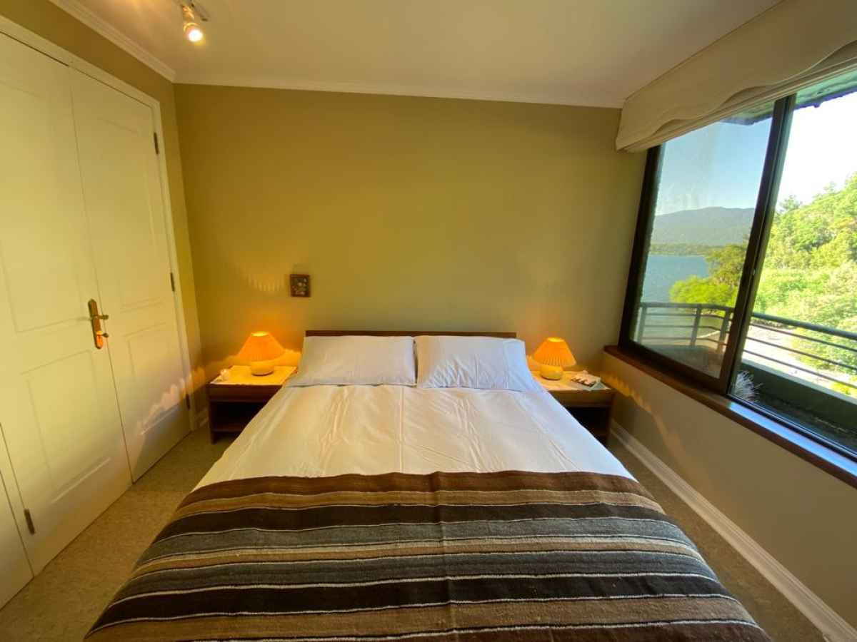 • Habitación Principal: Cama super king, con tv. smart tv , vista al lago, baño en suite