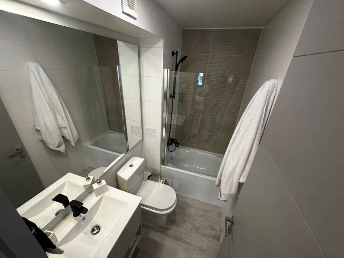 • 2 baños completos: 1 en la pieza principal y otro compartido.