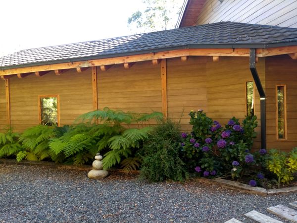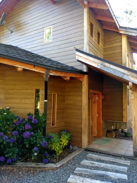 Casa de 2 pisos en madera bien mantenida, a orillas del Rio Trancura